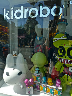 Kidrobot - Kidrobot produces Kozik's labbit toys, and along with an online webstore, there are physical retail shops in San Francisco, LA, Las Vegas, Miami, New York, Boulder and London, England. Kidrobot carries a wide range of Happy Labbits (mustachioed and innocent eyed) and Smorkin' Labbits (5 o'clock shadow, smorkin' on a ciggie) in vinyl, plush, and all sizes and colorways.