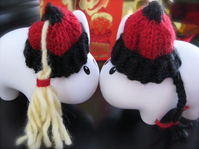 Happy Lunar New Year! Today, February 3rd, 2011 marks the first day in the Year of the Rabbit. To celebrate, I'm going to take a photo a day of my labbits, for the duration of the Year of the Rabbit. Here's the first photo, with Pipkin and Clover in hats that I knit them for Chinese New Year.