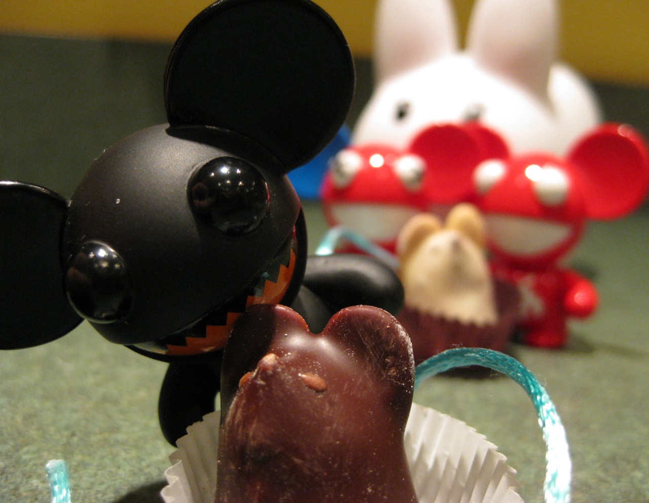 Tomohiro and Clover sampled a few chocolates before taking a white chocolate mouse and a milk chocolate mouse back for Joel and Zim. As you can see, Zim really likes chocolate.
