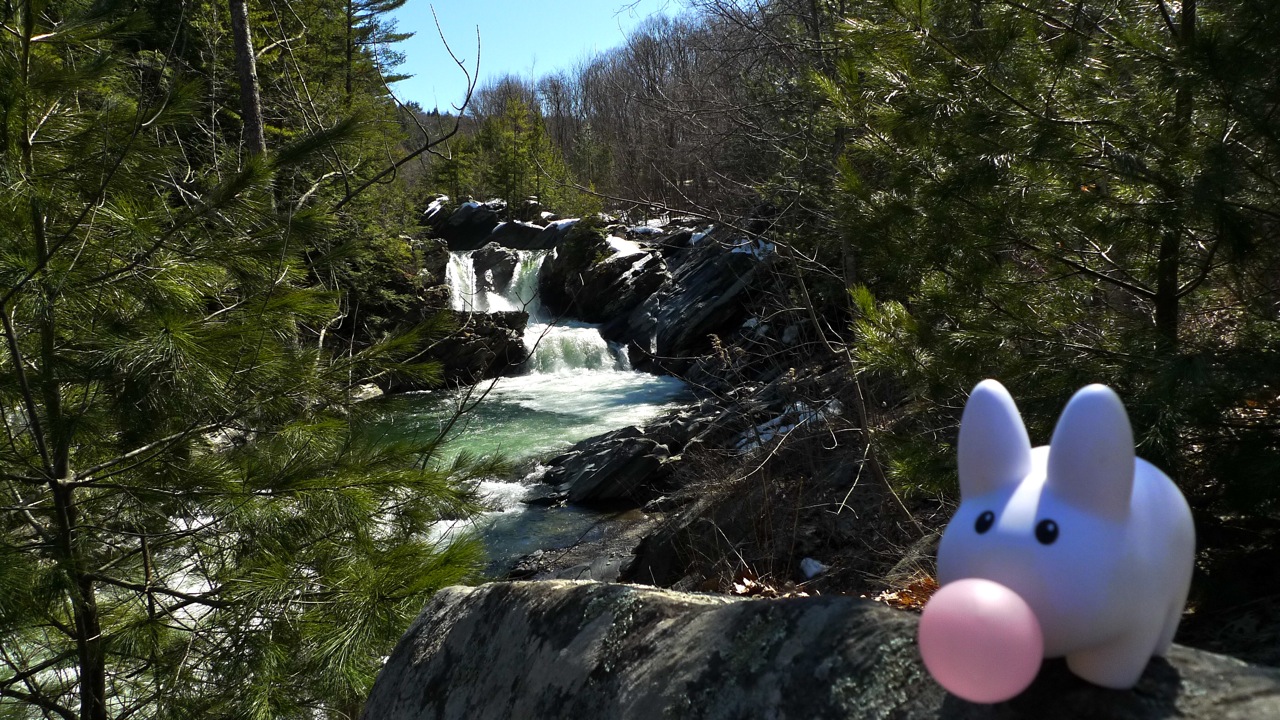 Today was such a beautiful spring day! Temperatures in the 50's, nothing but blue skies above, and pops of color here and there, like this waterfall along Saxton's River, and little bits of grass growing along some brooks, and the flowers at Allen Bros Farms (which has the best apple cider donuts, should you find yourself there!). Alas, it's New England and the forecast for tomorrow says 1 - 3 inches of snow, so Pipkin spent as much time in the sunshine while he could. Ah, spring! Warmer days are coming, Pipkin. Just you wait.