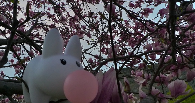 Bet you didn't know labbits can climb. Well, they must, because how else would Clover get into this Magnolia tree?