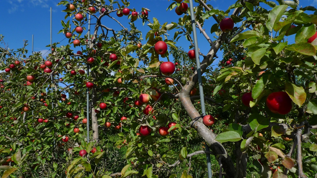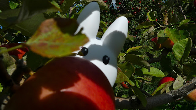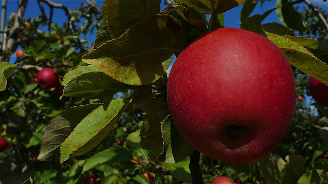 Clover peeks out from behind an apple at Alyson's Orchard in Walpole, NH. Apple season is in full swing, and Alyson's boasts over 50 varieties of apples, and also grows peaches, pears, plums, grapes and berries, both for PYO and for sale at their farm stand.