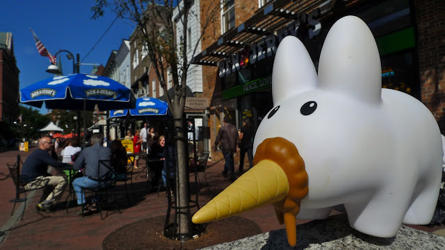 Pipkin was hoping to try out the new flavor at Ben & Jerry's but they were all out of Schweddy Balls. The scoop shop in Burlington, VT thought they had enough Schweddy Balls for weeks but they sold out in a couple days. Pipkin will have to come back another time, so today he went for a scoop of his favorite Ben & Jerry's flavor: Coffee Coffee Buzz Buzz Buzz.