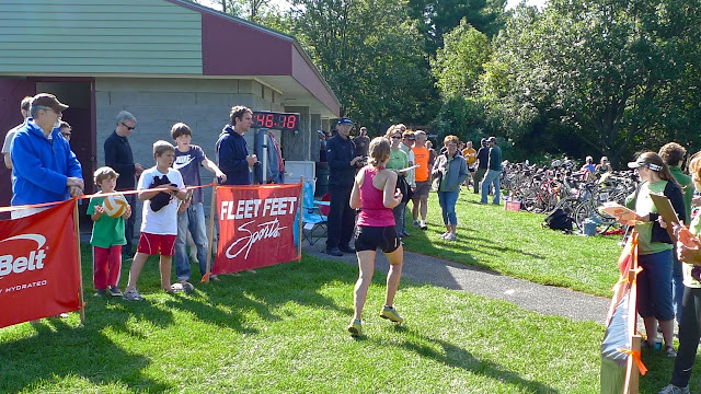 Here she is coming in after her 26 mile bike ride. She's looking strong, so Pipkin doesn't feel too bad about weighing down her bike! ;)