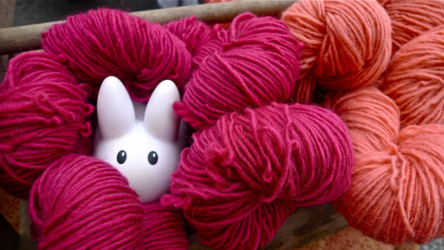 The days are getting shorter and the nights colder, and in the late afternoon, Pipkin sometimes feels a chill even with the crowd at the Bellows Falls Farmers Market. He snuggled down into some hand dyed wool in the hopes of staying warm - and perhaps a little undetected.
