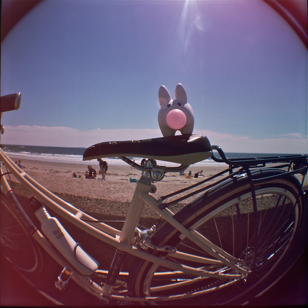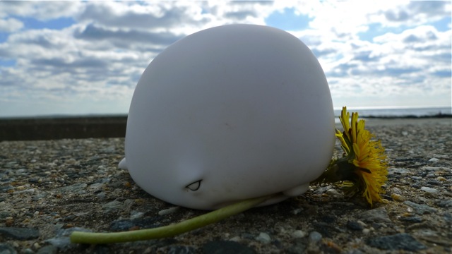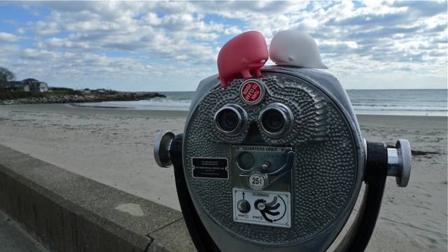 Ever since the munko whales told Pipkin about where they came out of the sea, Pipkin has thought fondly about his time at Rye Beach. Here he is, soaking in the late May sun while out on a bike ride.