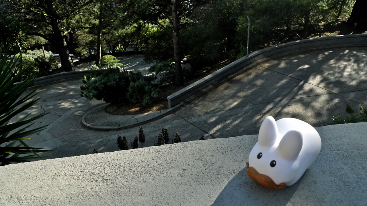 | After hopping down Lombard St, even Pipkin's mustache was crooked. |