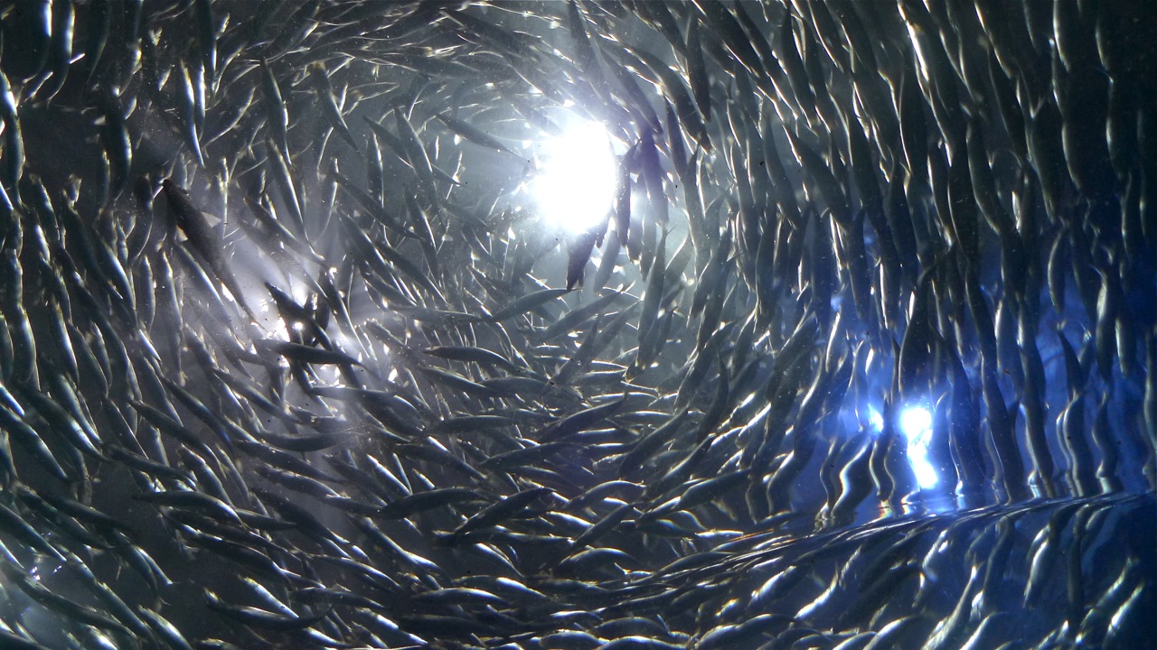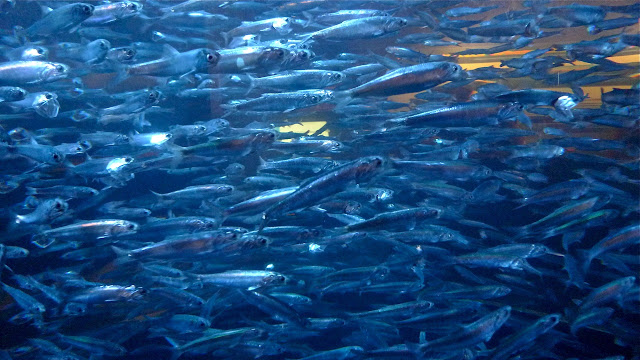 Or these sardines, swimming in pack formation at the Aquarium of the Bay. Looks dizzying...