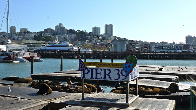 There's a lot of aquatic life to see along the Embarcadero, like these sea lions, hanging out at Pier 39: