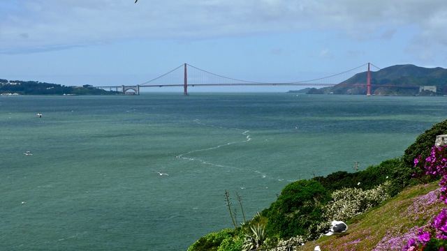 | A clear view of Golden Gate Bridge from Alkatraz. |