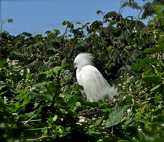 | The Rock is an important nesting area for birds like cormorants and this snowy egret. |