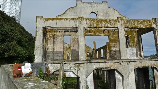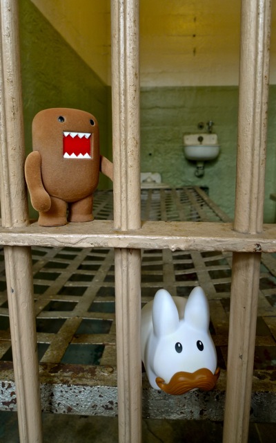 Pipkin and Domo got together after Pipkin's official labbit business with Frank and Kidrobot, and decided to do the tourist thing. And what's more touristy in San Francisco than a visit to Alkatraz prison, AKA The Rock? Hoping to avoid the midday tourist rush, Domo shook Pipkin out of bed super early and they rode a bus to Pier 33 to take the ferry to Alkatraz island.