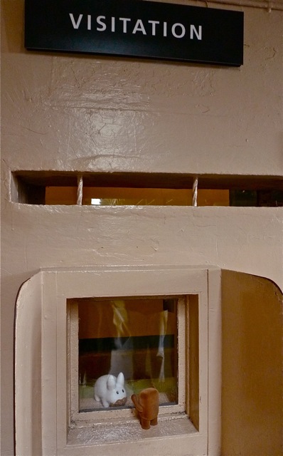 The cell is 5'x7'x9'. Pretty small for a hooman but quite spacious for a labbit. Still, prison doesn't seem like a fun place.