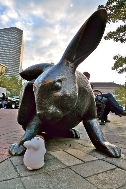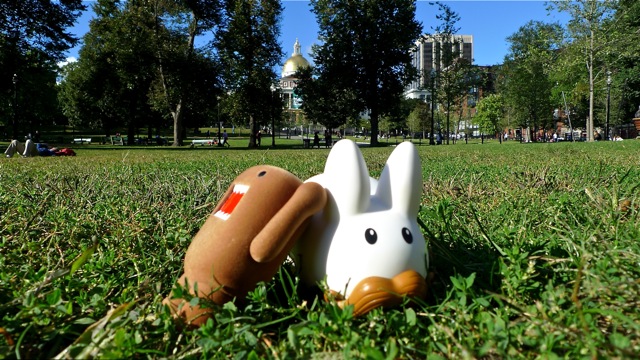 The next day was gorgeous so the two walked around downtown Boston. Pipkin was particularly interested in going to Boston Common and the Public Garden. In a city, labbits like to have a giant patch of fresh grass to munch on.