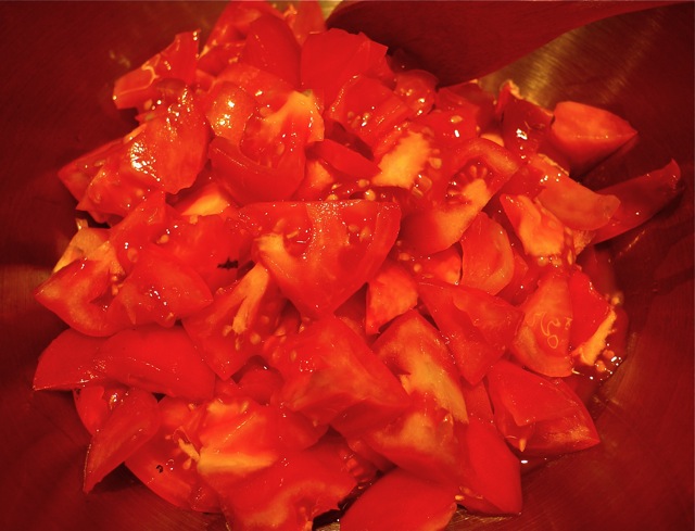 The best thing to do with fresh tomatoes, is to make tomato soup. If that's too boring for you, you can make it fun by adding in some alphabet pasta. This soup is tasty because of the quality of the tomatoes. Treat yourself to some heirloom tomatoes, or a variety of fresh, ripe tomatoes from your own garden or the local farmer's market. Grocery store tomatoes that had been picked weeks before ripening and shipped across the country just won't taste as good. Print the recipe here.