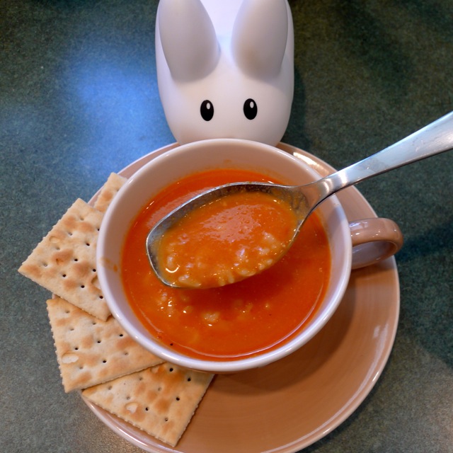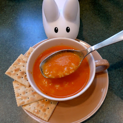 Mmmmm...I think I might make mine with milk instead of chicken broth though, to make a nice creamy soup. So. Many. Tomatoes. And then night temps below freezing from tonight through Sunday: debating whether to cover tomatoes, dig them up and bring them indoors, or just call it quits and let mother nature win.