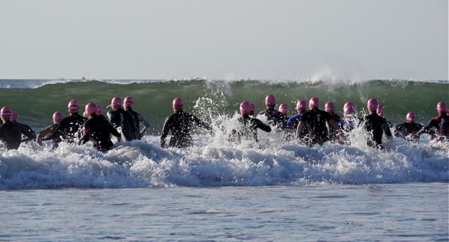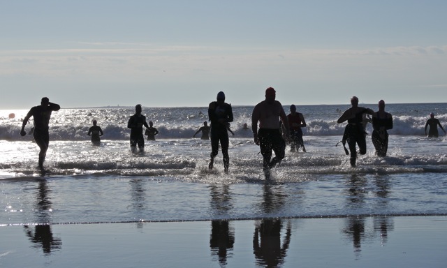 Without too much thought he hopped on the bike and got pedaling. In an easy, steady spin for the first three miles, he wasn't sure he was alive. Cyclists zoomed past him on the left while his mind still swam in the grey waters of the Atlantic. Did he really make it out of the ocean? He could still feel the waves crashing against him. He could still smell the salt water and tasted it on his lips.