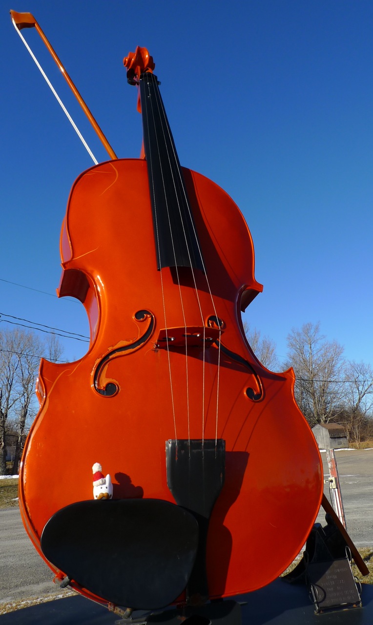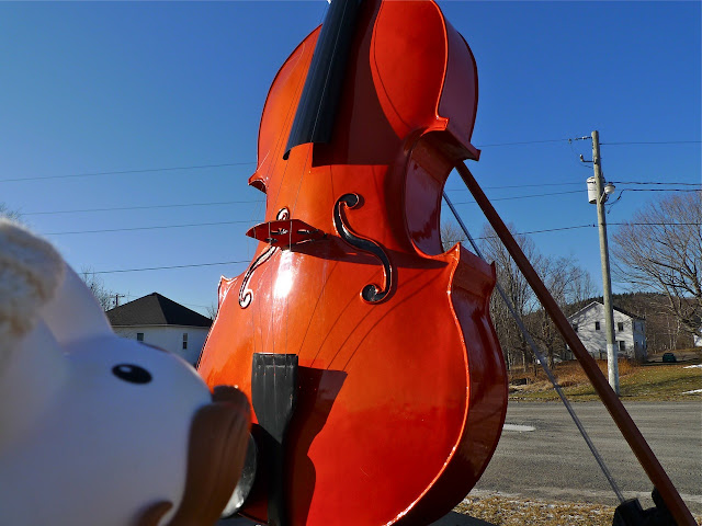 During a recent holiday visit to New Brunswick, Pipkin made a point to stop by the giant fiddle in the town of Harvey. He'd heard of its existence but always seemed to be in Harvey at night, often visiting his friend (and fiddler!) Katherine Moller. He last heard Katherine playing fiddle in the barracks in downtown Fredericton in August. This time, he made sure he'd stop by the fiddle in daylight on the way home to Vermont. Every road trip needs oversize roadside attractions.