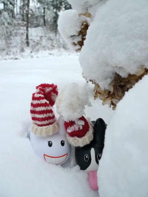 Southern Vermont hasn't felt like winter yet this winter! It's been unseasonably warm, and there hasn't been snow. Naturally, the labbits are very happy for today's snowfall. It makes Vermont so much prettier, and Clover does like to accessorize with hats. Hopefully temperatures will stay low enough for the snow to last, but Teddy tastes freezing rain in the forecast. Better enjoy the snow while it lasts...