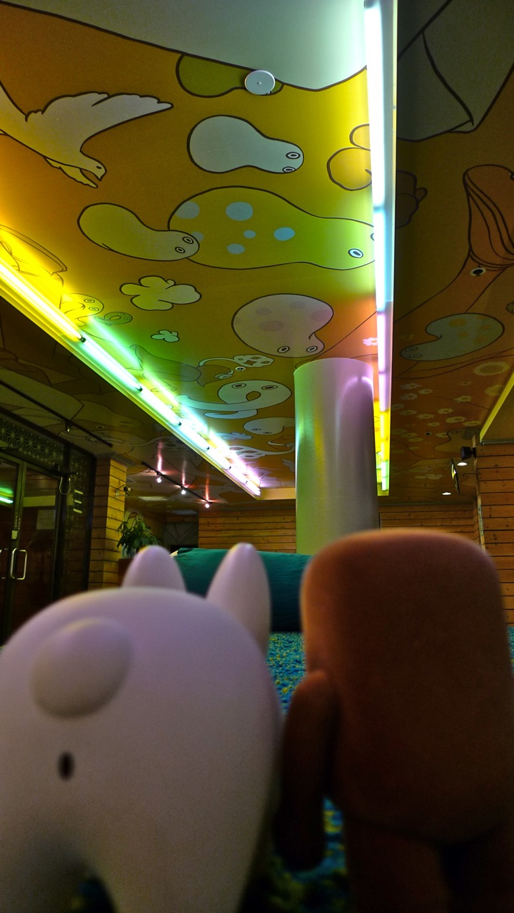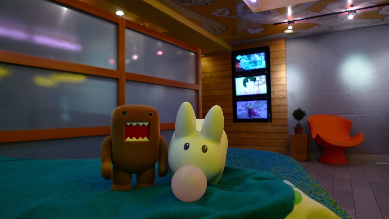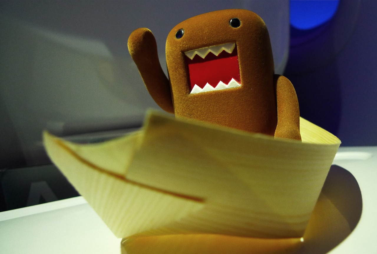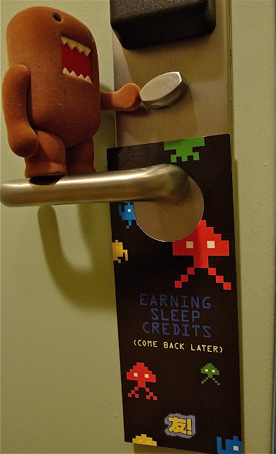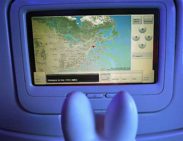 The best thing about flying East to West during a sunset is the super extended sunset. The colors are brilliant, and sometimes, you can't tell where the land ends and the sky begins. But eventually, the rotation of the earth wins over the aircrafts' speed, so Domo and Pip just chilled in their seats and got a little shut eye.