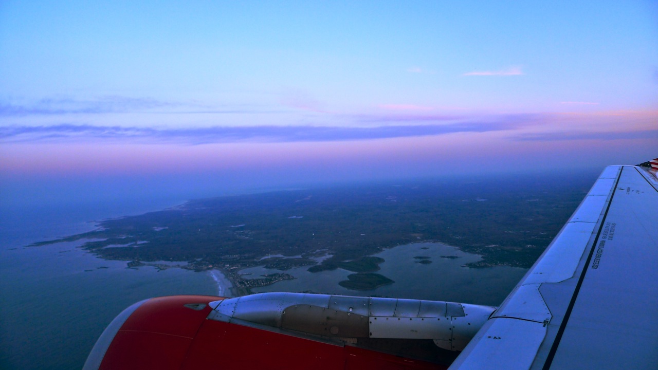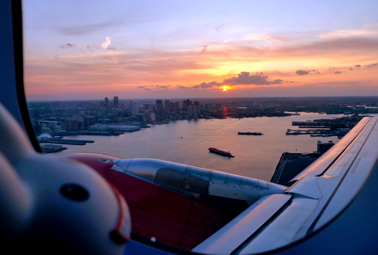 Shortly after take-off, Pipkin enjoyed the setting sun over Boston...