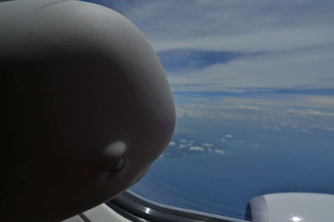 So Pipkin sat back in his seat and buckled in for a long flight. (Finally, the stewardess came by several times to tell them to buckle up and turn off the camera during take-off. Whoops.)
