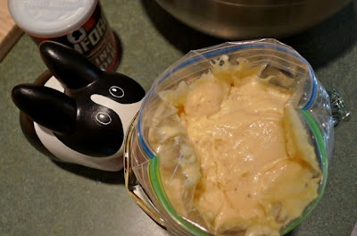Once they've melted, stir in the confectioner's sugar, hot water and almond extract. Dip in the mini donuts to coat (watch your paws, the glaze will be hot!) and set aside to cool. You may also drizzle the glaze, and make fun patterns and the like.