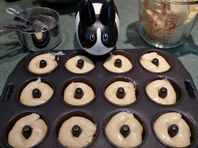 It's a gorgeous, late summer Sunday in Vermont, and Masher McBuns is off for a 6 mile run, followed by a 25 mile bike ride later today. He likes to treat himself to something hot and fresh from the oven, so it's a good thing he lives with labbits who like to bake.