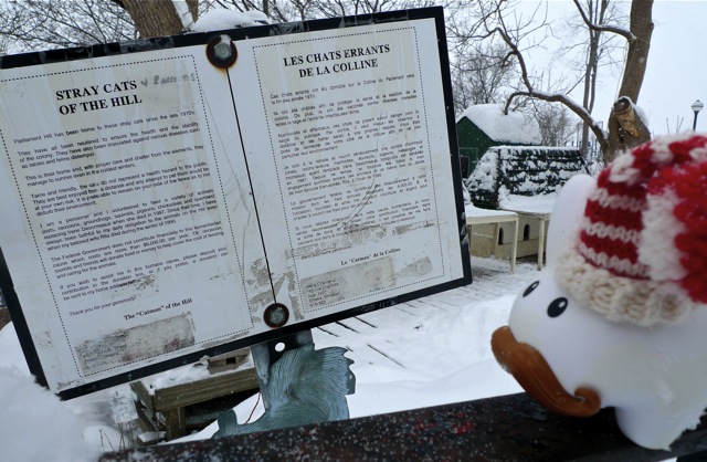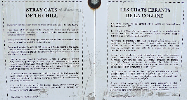 Pipkin got to see these little cat houses one last time before they would be dismantled, but he's incredibly sad to have missed saying goodbye to Bugsy. The only critters he could visit were the black and grey squirrels, who no doubt are enjoying this last free meal. It's sad saying goodbye to the Sanctuary, but Pipkin feels the volunteers made a wise decision in giving the cats warm homes for the future. The volunteers have done a wonderful job taking care of the stray cats on Parliament Hill. They had millions of visitors through the years, and in the hearts and minds of those who have visited, the cats and the kind volunteers are not forgotten.