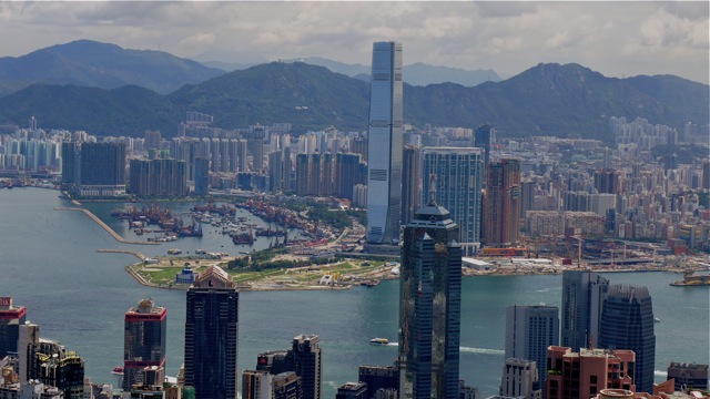 | The view from the peak: Central, Victoria Harbour, Kowloon, and the New Territories beyond. |