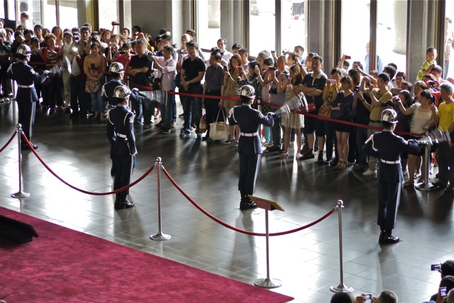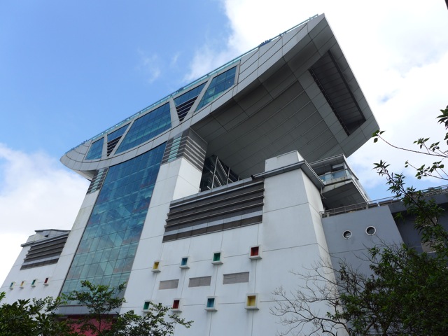 Off the tram, you arrive at the Peak Tower, a shopping, entertainment and food complex with a 360° view at its observation deck. Through the windows you can just make out all the escalators that take you up to the top.