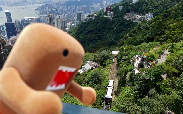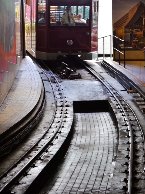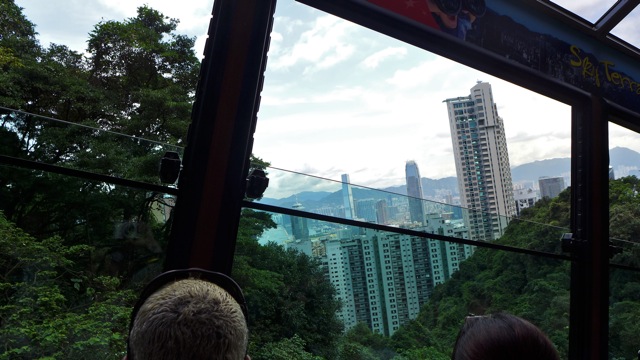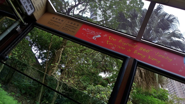 The Peak tram is an electric funicular railway. It travels 1364 m (4475 ft) and gains 368 m (1207 ft) with varying grades of steepness. At its most steep, it travels at 48% grade! The Peak Tram provides beautiful views of Hong Kong and Kowloon. There are only a few stops midlevel, and the trip takes under 5 minutes to reach the peak terminus.