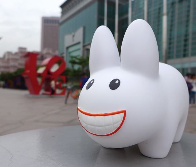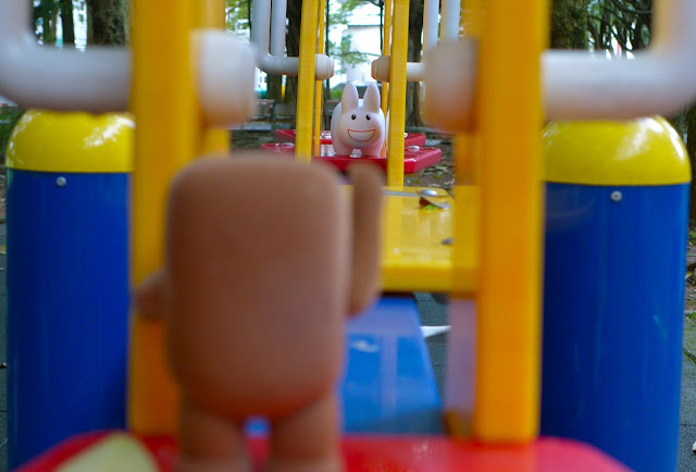 It's rather dark waiting for the tram, but labbits feel cozy in dark, underground places. Here comes the tram!