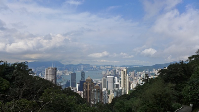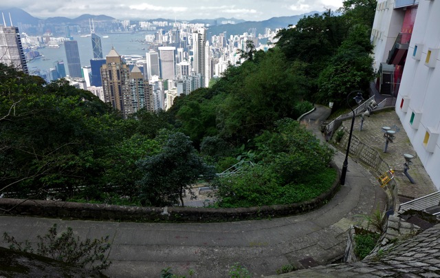 The sweat equity is worth it, if you want to get away from all the tourists at The Peak Tower. Here at the top, it is quiet and you can get lost in the views of ships in the ocean.