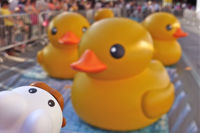| Pipkin tries to find his giant ducky friend across the harbour. |