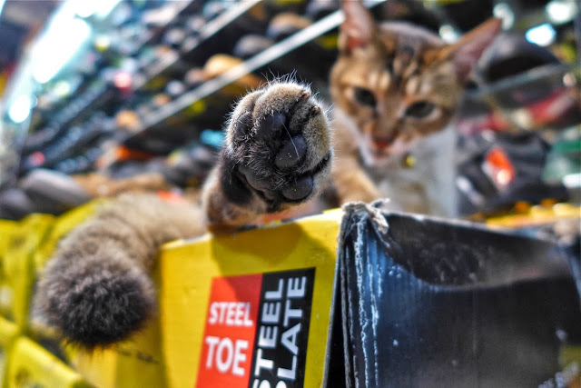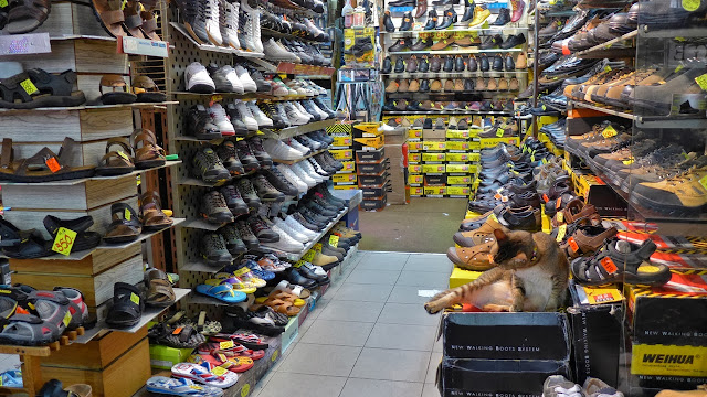 Pipkin wasn't in the market for a fake Gucci bag, off color Rolex or a misspelled Ferrari phone case, but he did enjoy people watching. Hidden in the back of these stalls are shops with antiques, Chinese herbs and other miscellany. Pipkin saw something out of the corner of his eye in this shoe shop. See it?