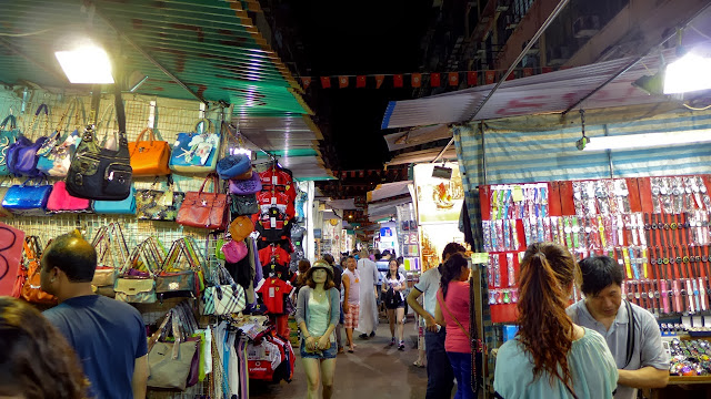 So people tend to go out. One of the things people do at night is get their shopping done. Temple St. Night Market is one of the busiest flea markets in Hong Kong. It's found on the Kowloon side, in the Jordan neighborhood. Often referred to as the "Men's Market" you will find all sorts of clothing, belts, shoes, DVDs, powerful laser pointers (banned in the USA!), lighters and food. Expect knock offs and bargains, and don't forget to haggle.