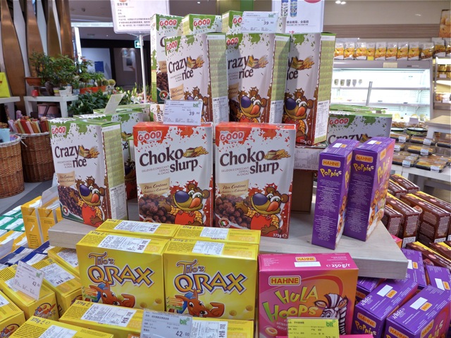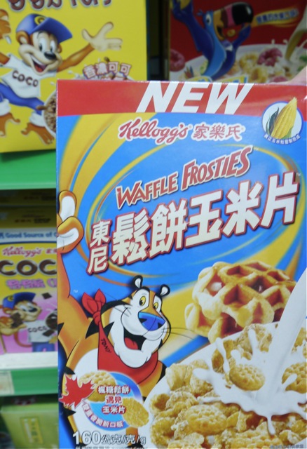 This display was certainly aimed at the ex-pats in Beijing. The Chinese don't traditionally eat cereal for breakfast. There's some fun looking cereals in there, including this one below that made Pipkin homesick for Vermont: