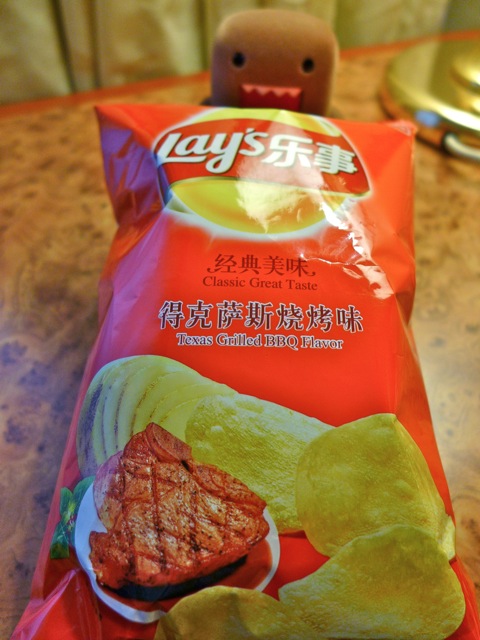 Domo searched all over Hong Kong, Macau and Beijing for Lay's Seaweed flavoured chips, alas, he couldn't find any. They were only in Taiwan! He's glad he got to taste them, even if only once. These Texas Grilled BBQ flavoured chips tasted a lot like the BBQ flavour you get in the USA, which suited Domo just fine. I guess he's a little homesick.