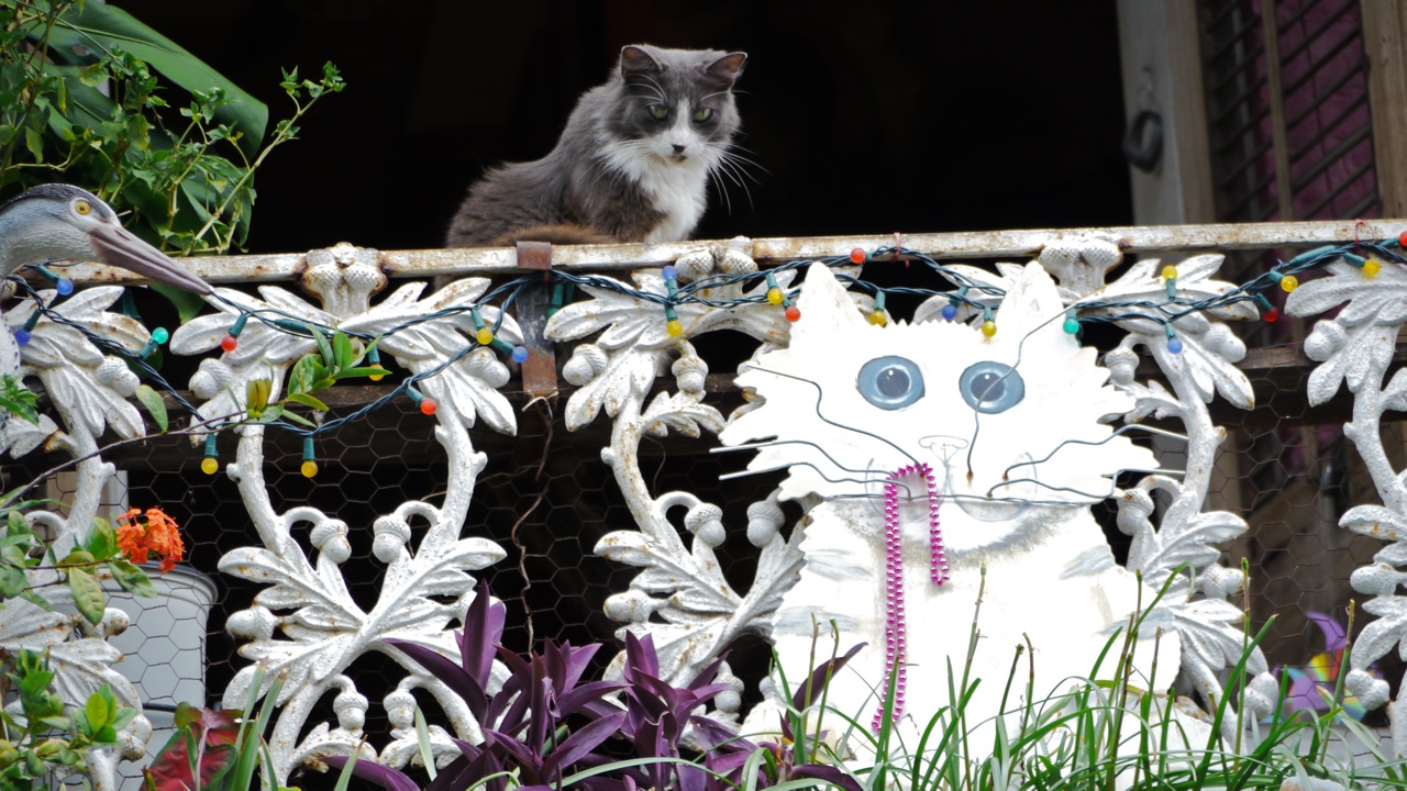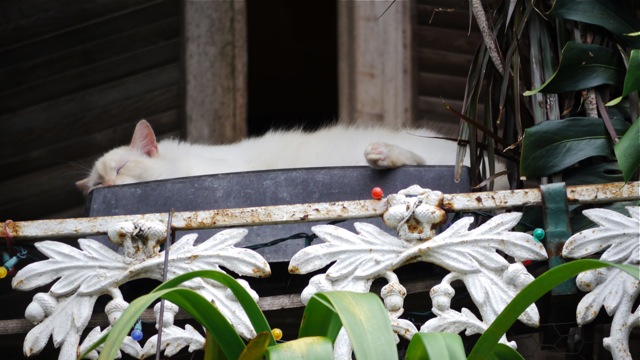 While Clover and Ted have a poolside siesta, we bring you...cats of the French Quarter!! Look closely, can you see them?