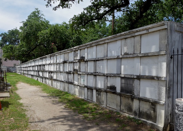 The surrounding walls have vaults built into them, most of them unmarked. There are about 500 vaults at Lafayette Cemetery No. 1.