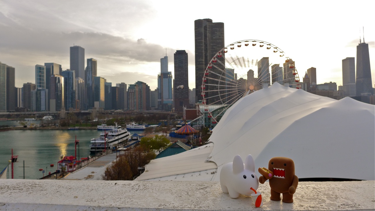 The pier's the perfect place to indulge in a hot dog, but there's just one rule: no ketchup. A real Chicago style hotdog is said to be "dragged through the garden" - an all beef dog on a poppyseed bun, with yellow mustard and condiments like tomato slices, chopped onions, dill pickle spears, and maybe lettuce or cucumber slices. Pipkin ate all the greens off of the hotdog, leaving Domo with just the hotdog and mustard - "the important parts" in Domo's opinion. It's nice when vegetarians and meat-eaters can get along.