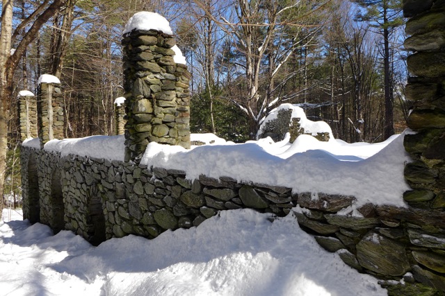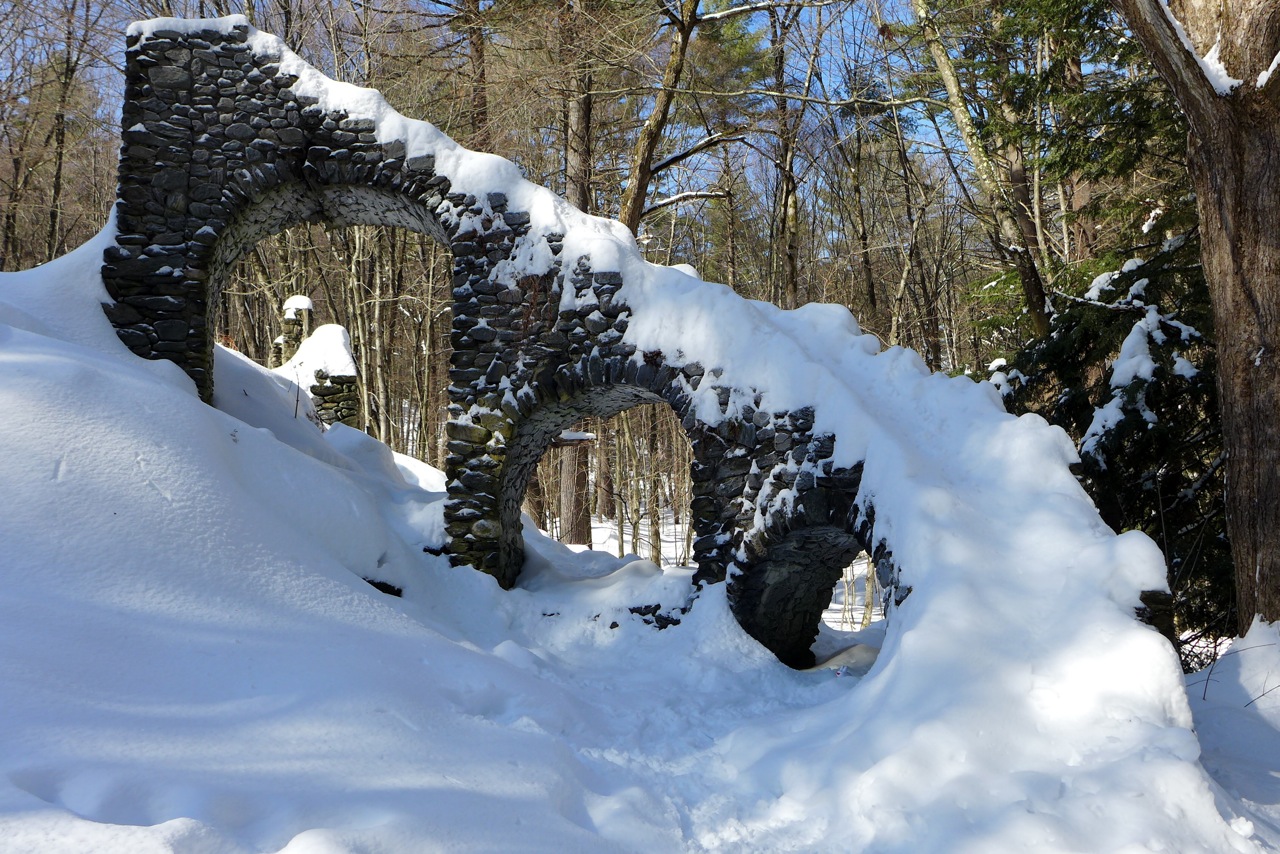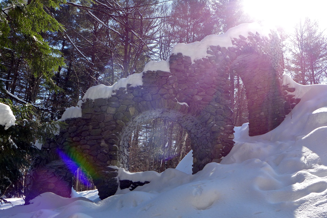 Madame Sherri's castle ruins are worth visiting in summer and in fall. In the summer you can see more of the foundation (there's several feet of snow covering the grounds in these photos). In the fall, the autumn leaves on the stones make for a colourful backdrop and really bring out the drama of this legendary site.