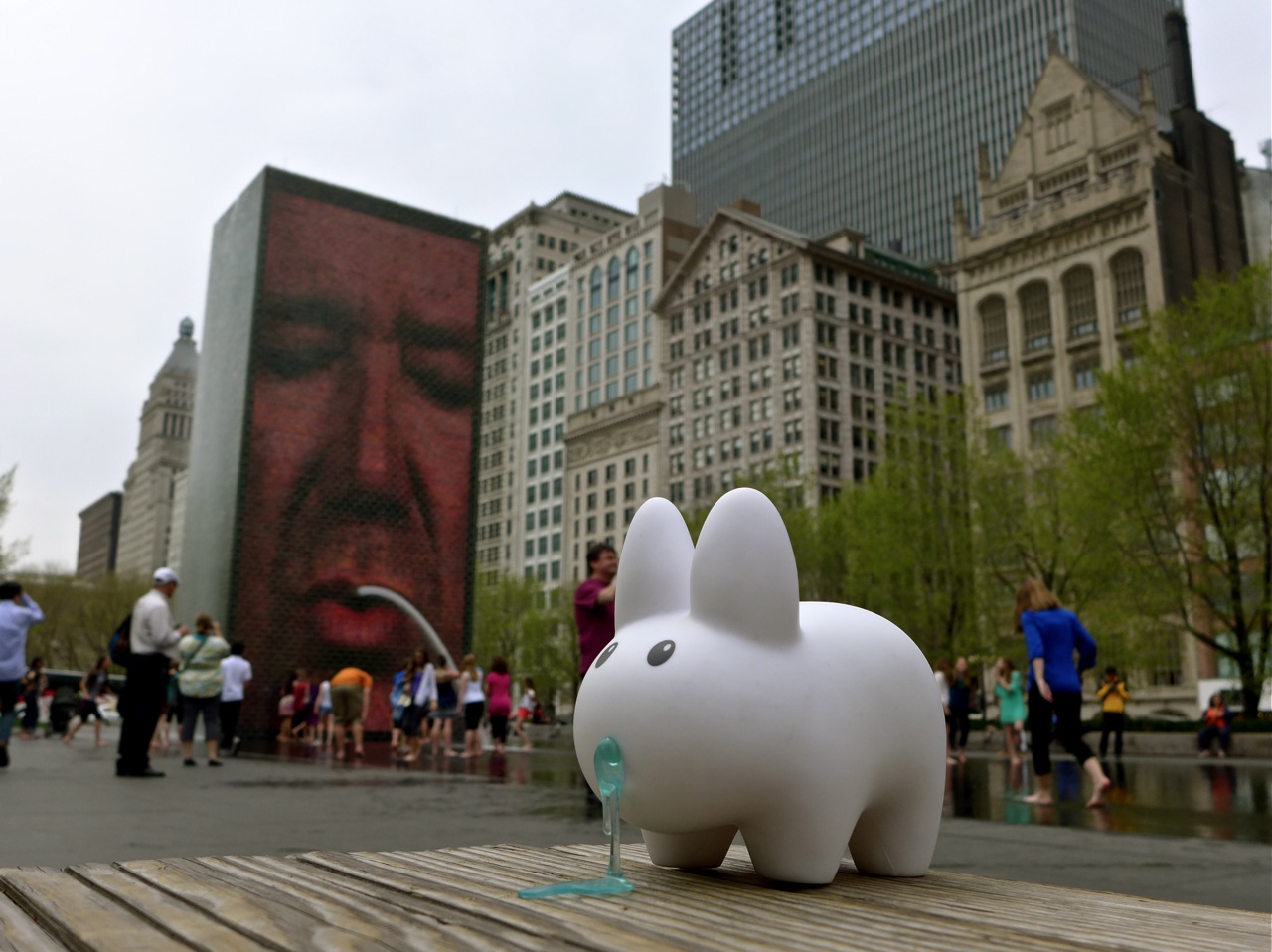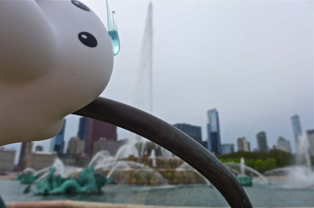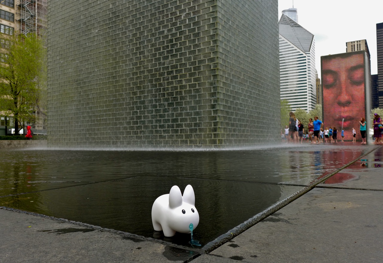 Pipkin's hope for a grassy spot to nap was a bust, but continuing his hop south in Millennium Park he came across Crown Fountain, which, in his opinion, is the best fountain ever!