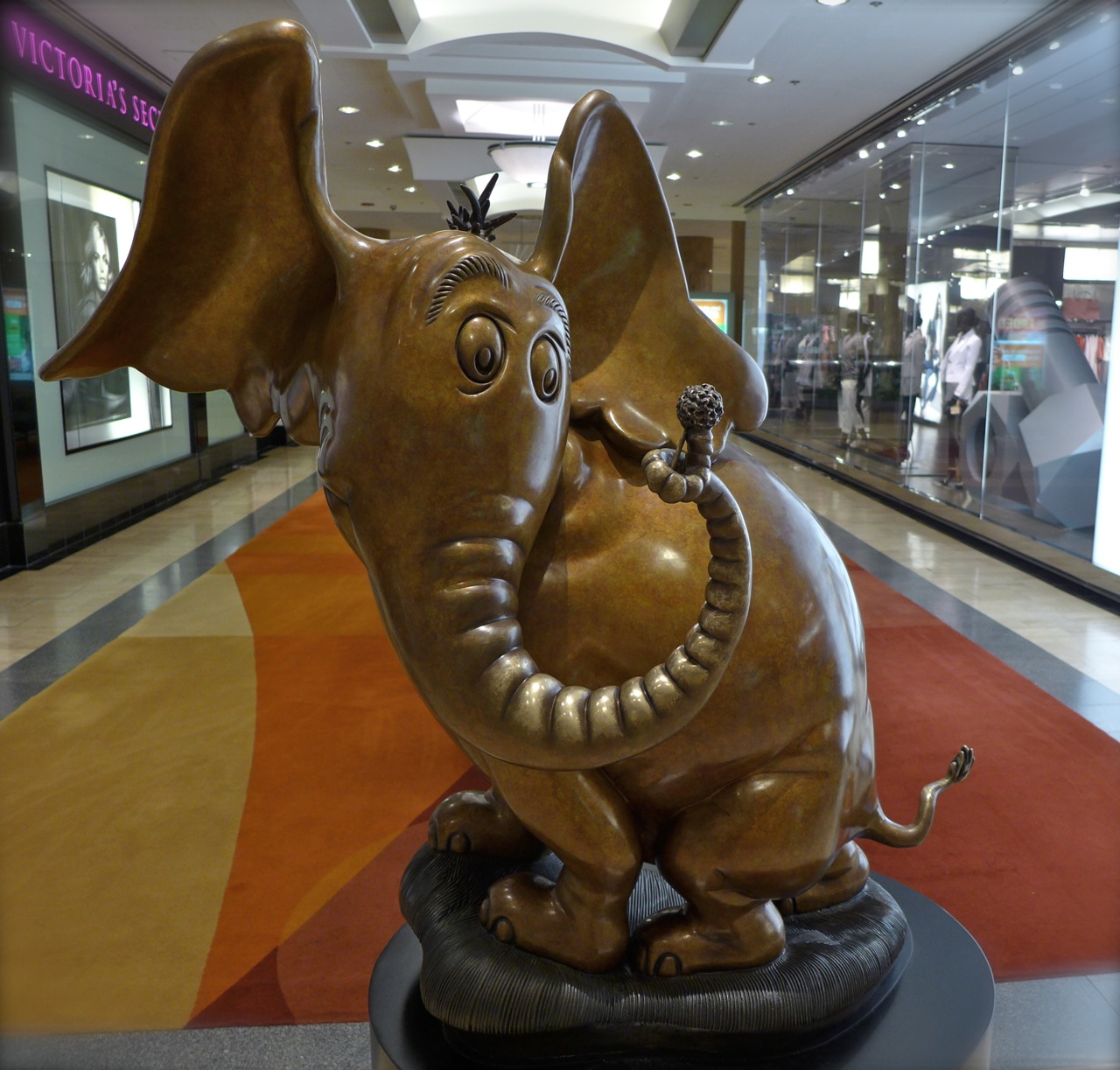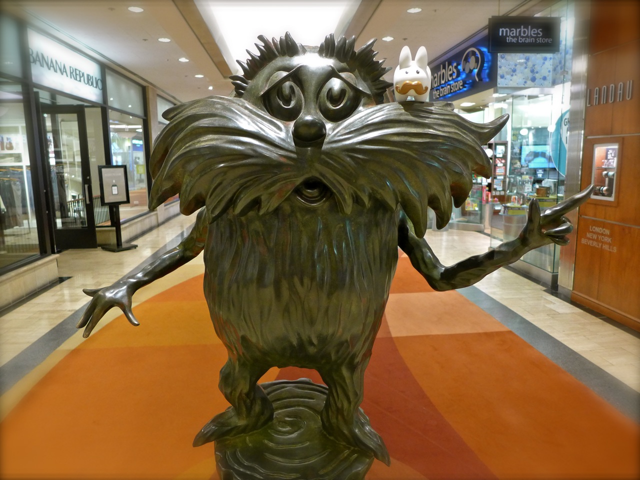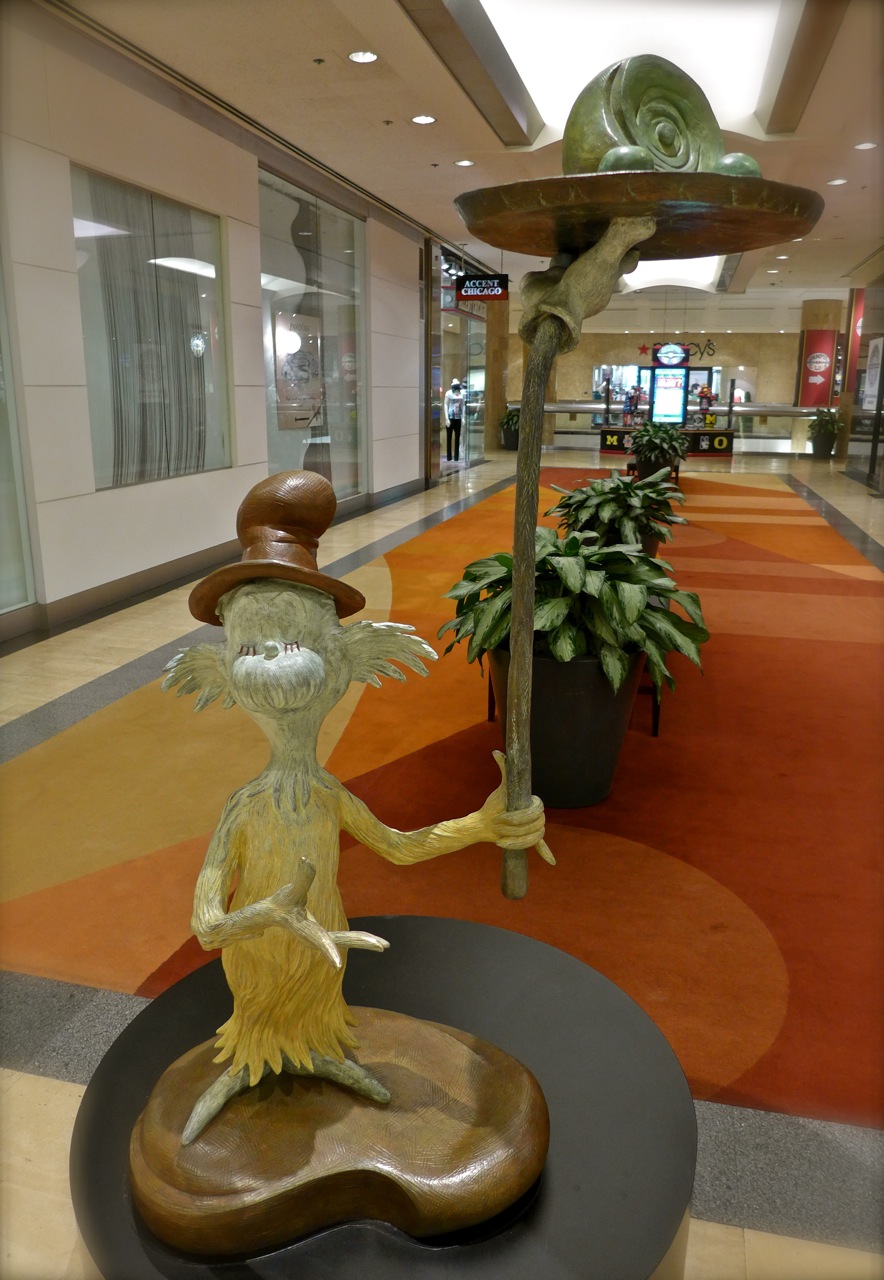 There's a place where you won't often find Pipkin - the Mall. Pipkin made an exception on his recent trip to Chicago, because at the Water Tower Place on the Magnificent Mile (magnificent for the amounts of money people spend there) there was a short exhibit of some of Dr. Seuss' bronze sculptures.