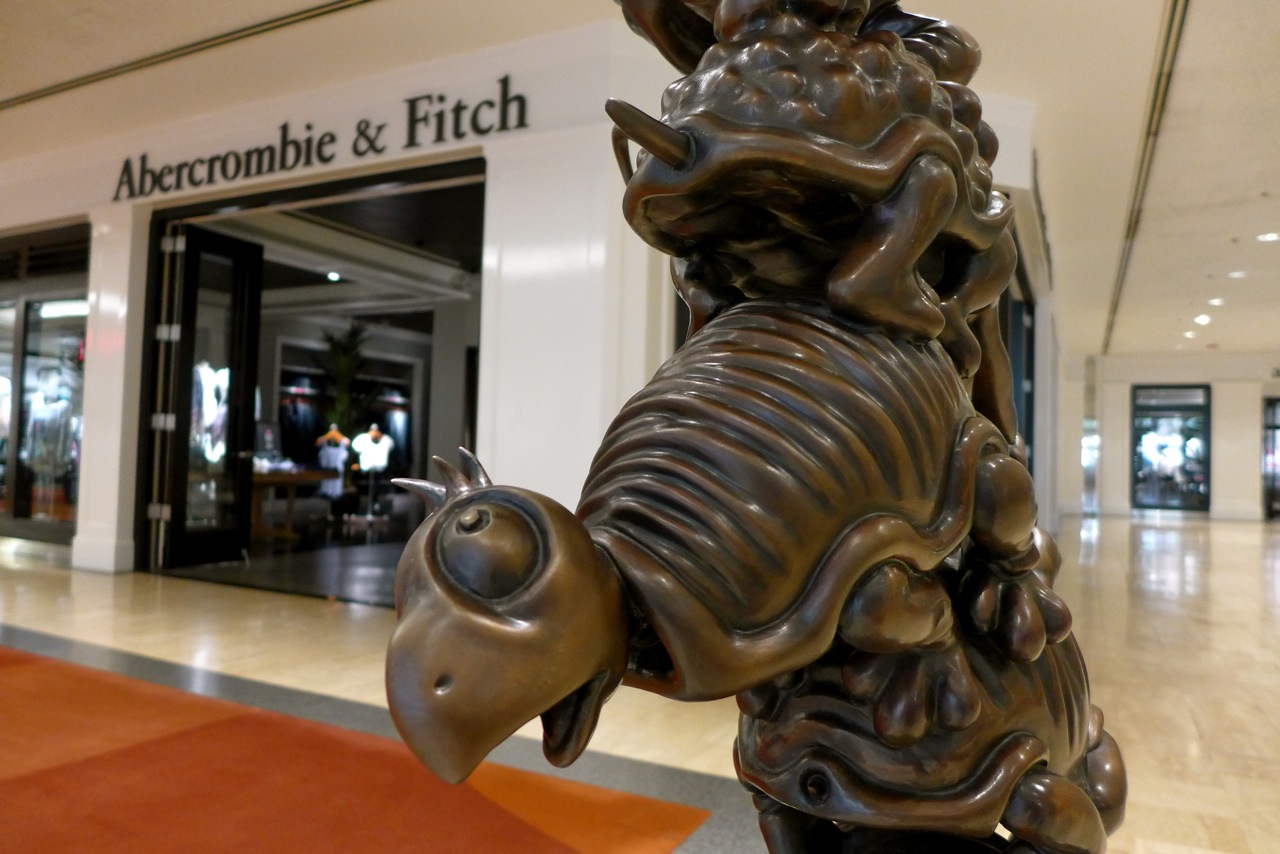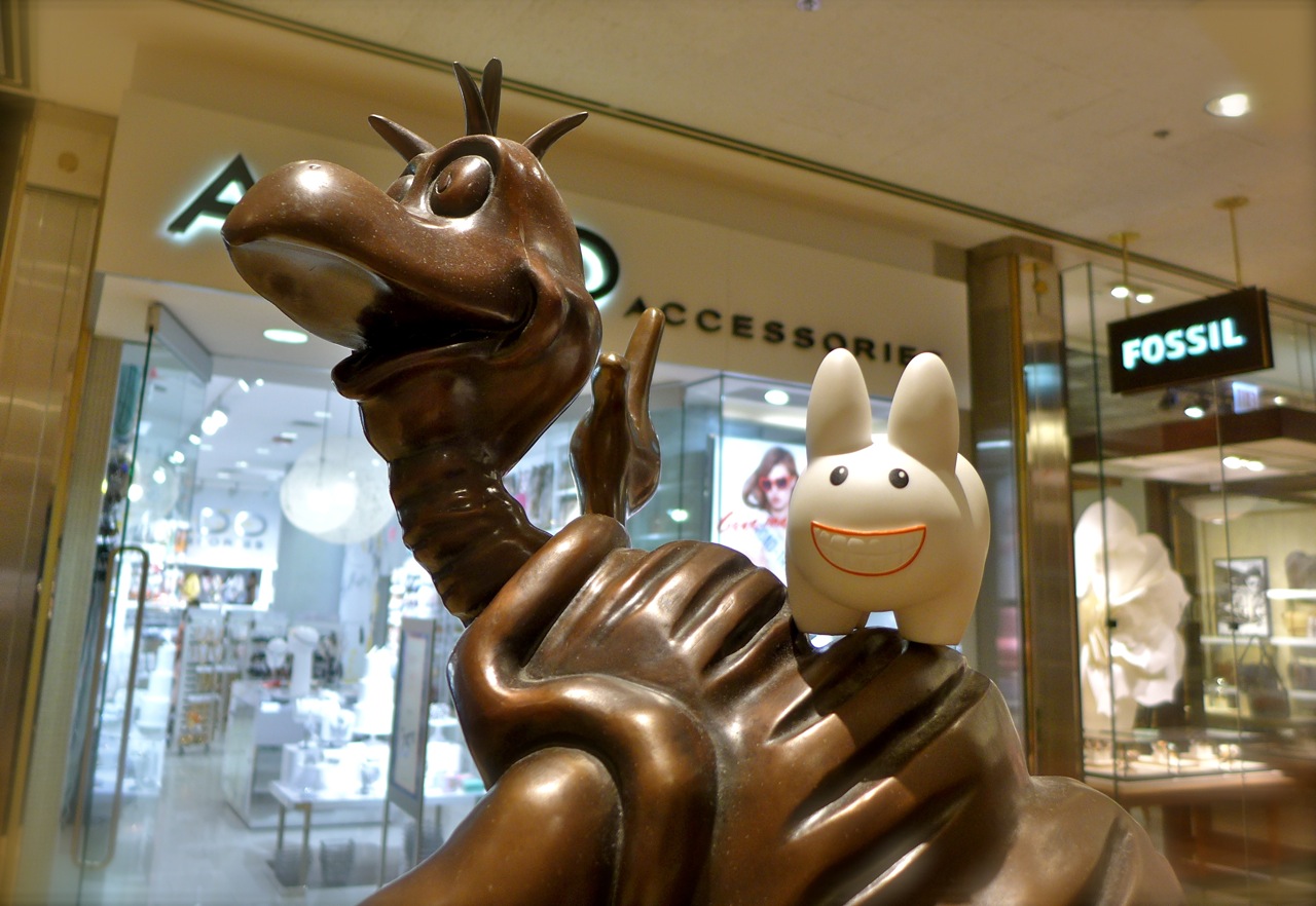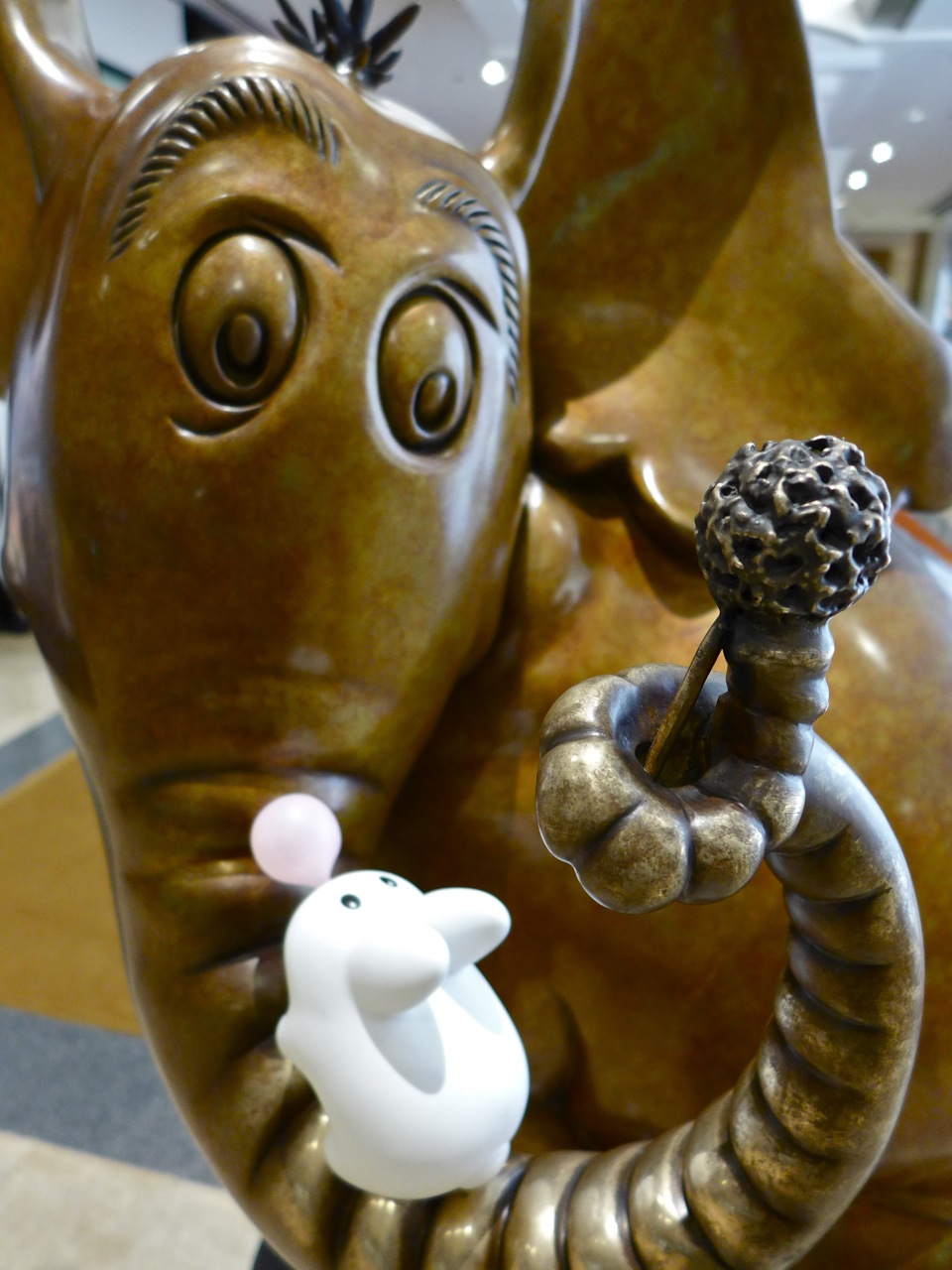 There's a place where you won't often find Pipkin - the Mall. Pipkin made an exception on his recent trip to Chicago, because at the Water Tower Place on the Magnificent Mile (magnificent for the amounts of money people spend there) there was a short exhibit of some of Dr. Seuss' bronze sculptures.