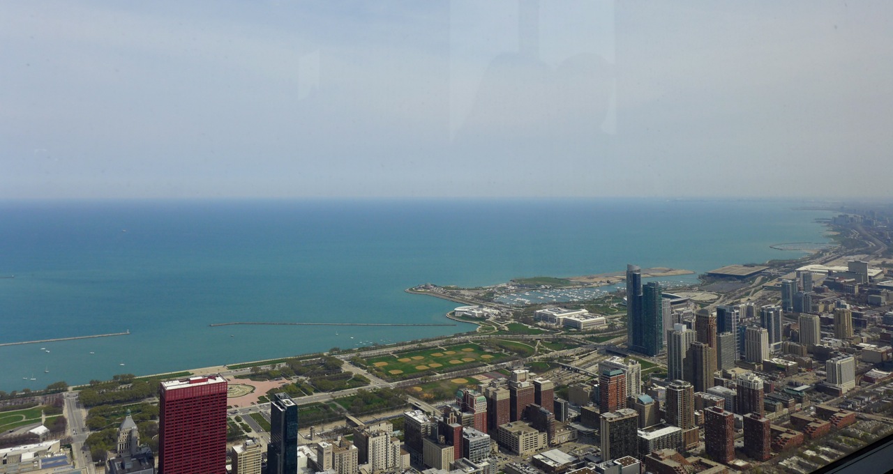 In the last post, Pipkin and Domo were at the observation deck on the 103rd floor of the Willis Tower. From there, they could see Chicago in all directions. Looking west, they saw this: