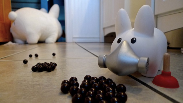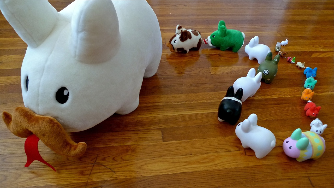 The mini plushies got together and did a group costume. The most colorful of the labbits, they worked with what Kozik gave 'em and used their colors to their advantage and became the Angry Birds.
