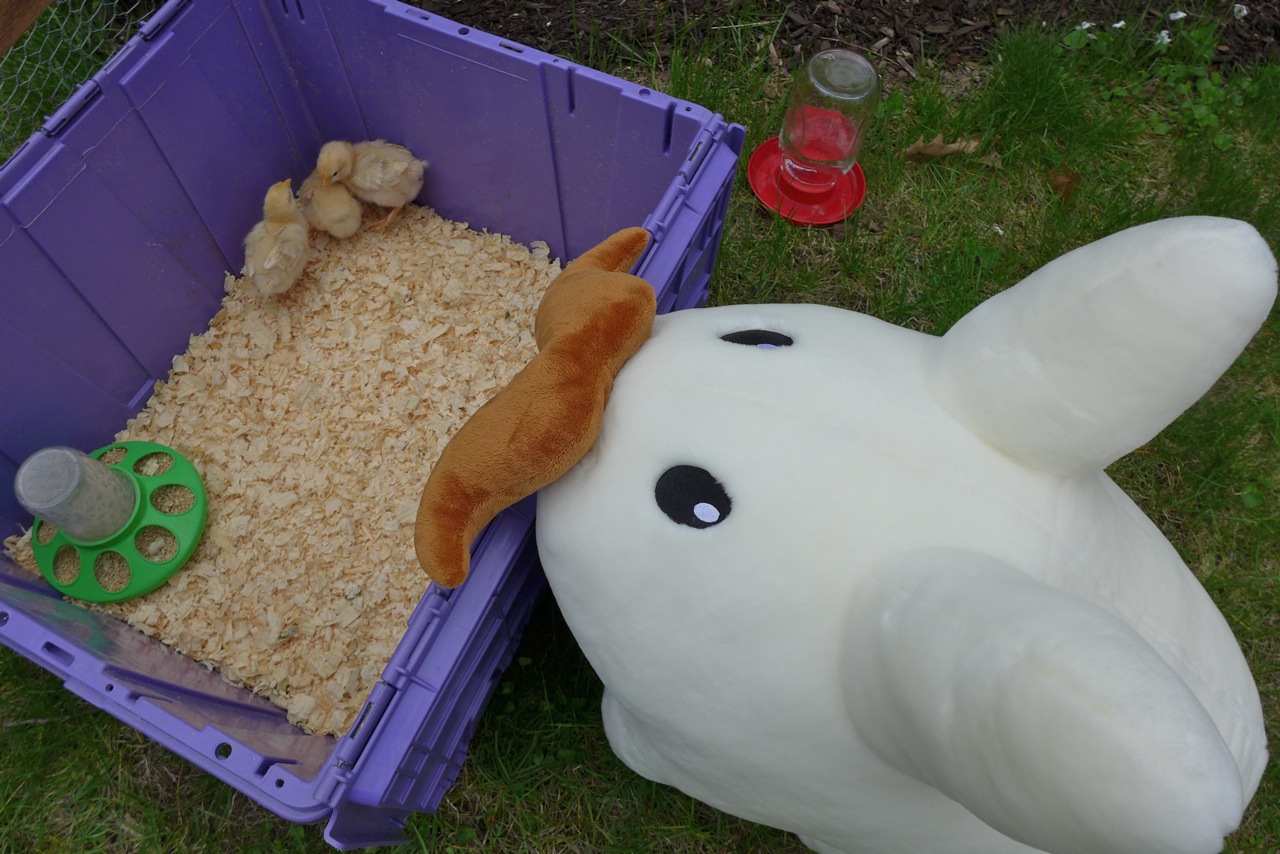 The last time the warren received a box at the door, the box had warnings on it. This one simply said, "Chick transport box". The cat opened the box and inside...