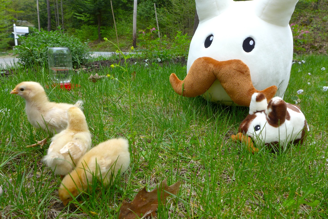 ...were three little chicks! Kitty took the chicks to Chief Labbit Uncle Warren, who knew exactly what to do with them. He set them up with all the things three baby chicks need to grow into strong laying hens.